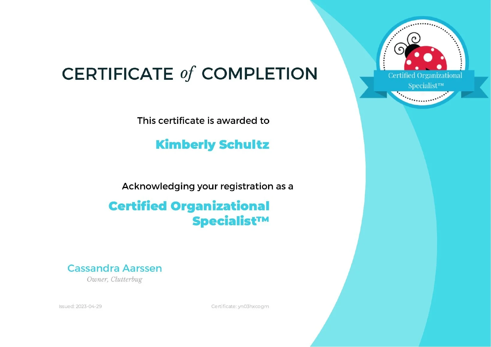 A: Yes, I am a Certified Organizational Specialist™ and completed the certification course through Clutterbug Courses.